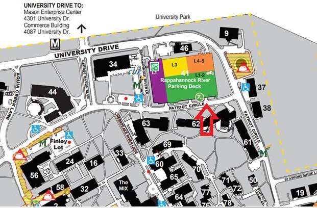 Rappahannock River Parking Deck right next to Merten Hall